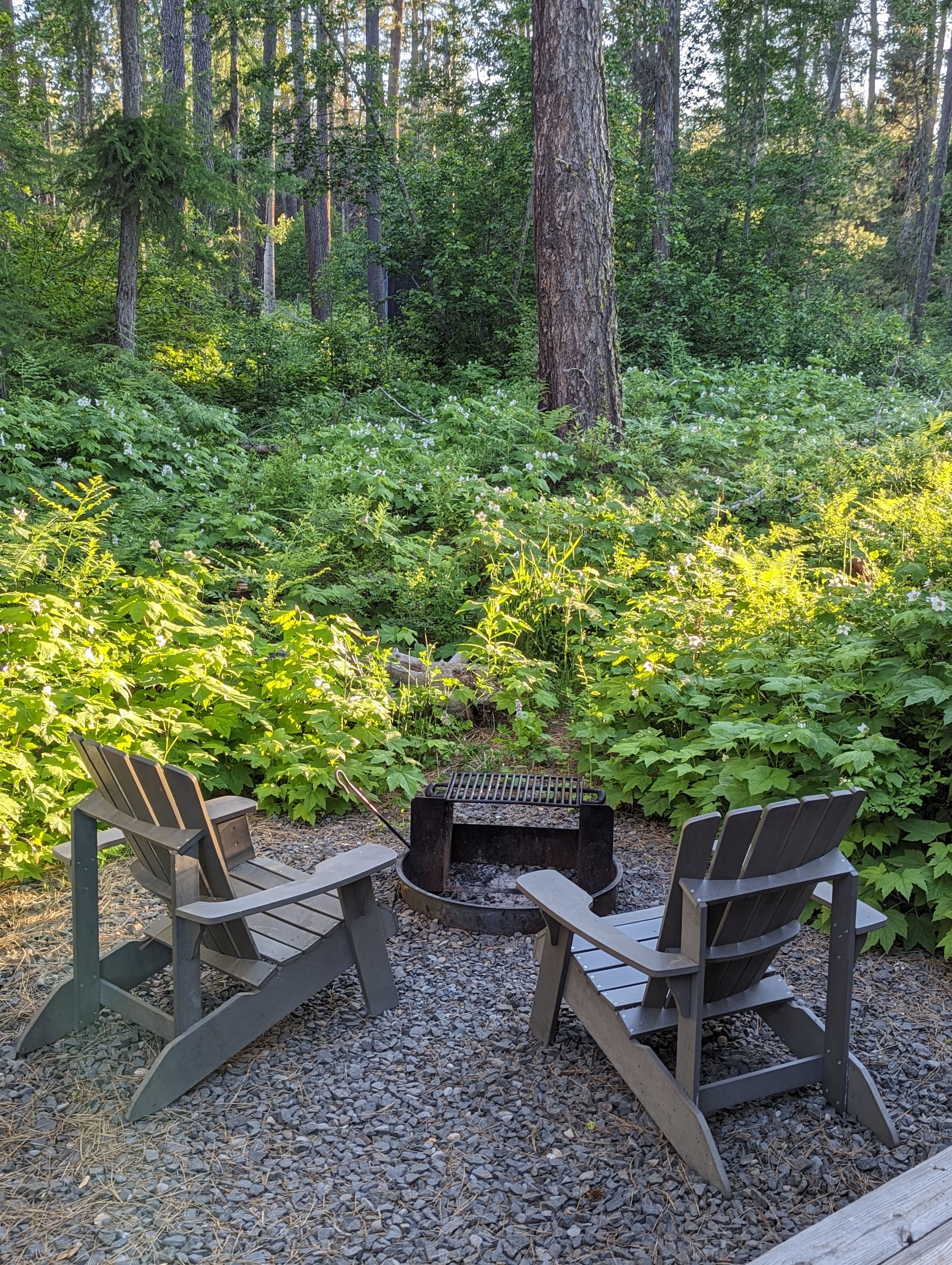 Our Getaway had a lovely firepit with two Adirondack chairs. Here it is in the late afternoon sun: