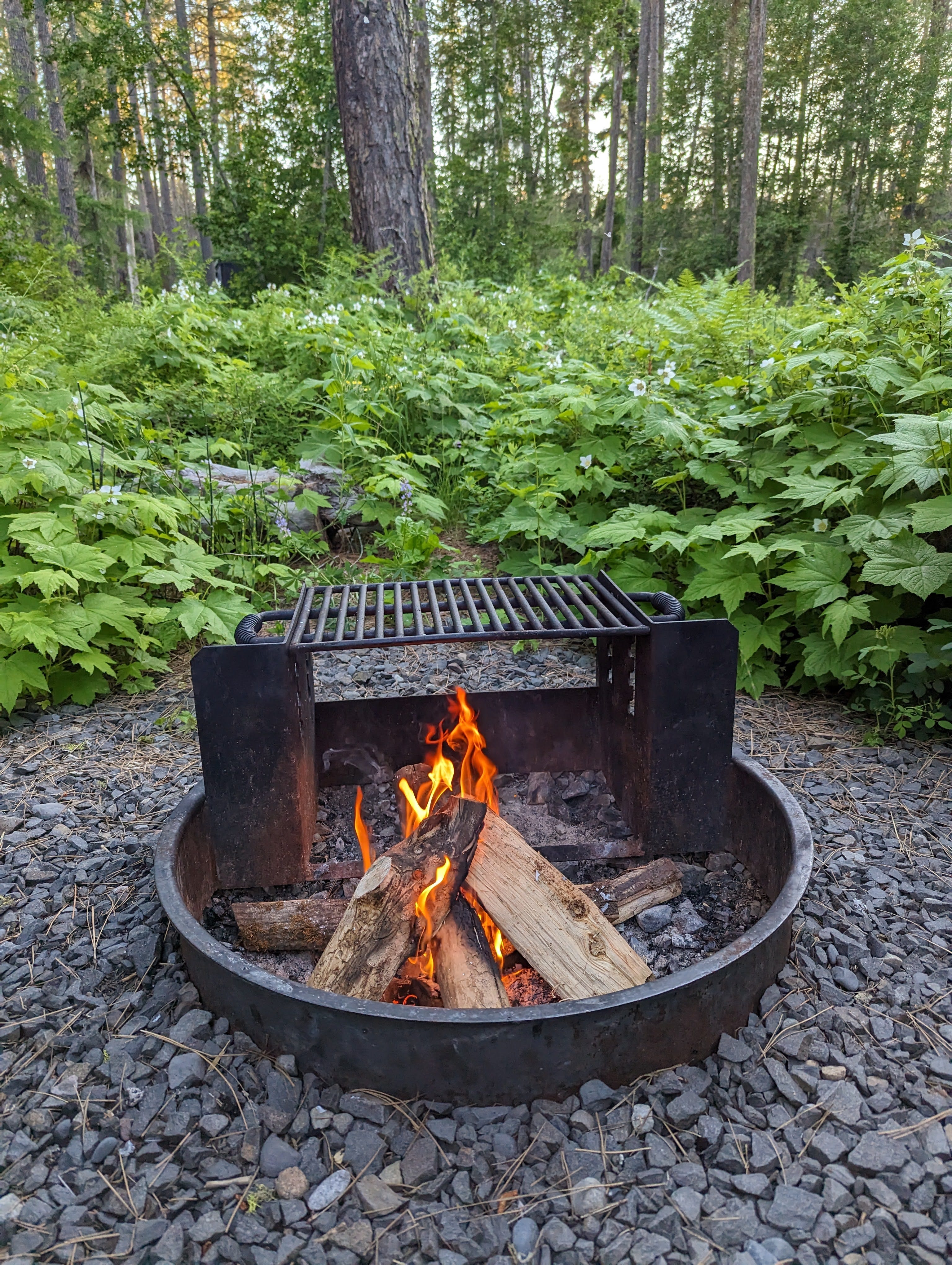 As the evening progressed, we made a fire. Every year when we go camping, the fire danger is usually so high we haven’t been able to have a fire so this was a special treat for us. My dad was always a master at building fires. I was grateful that I was able to get it going with a little newspaper, kindling and wood.