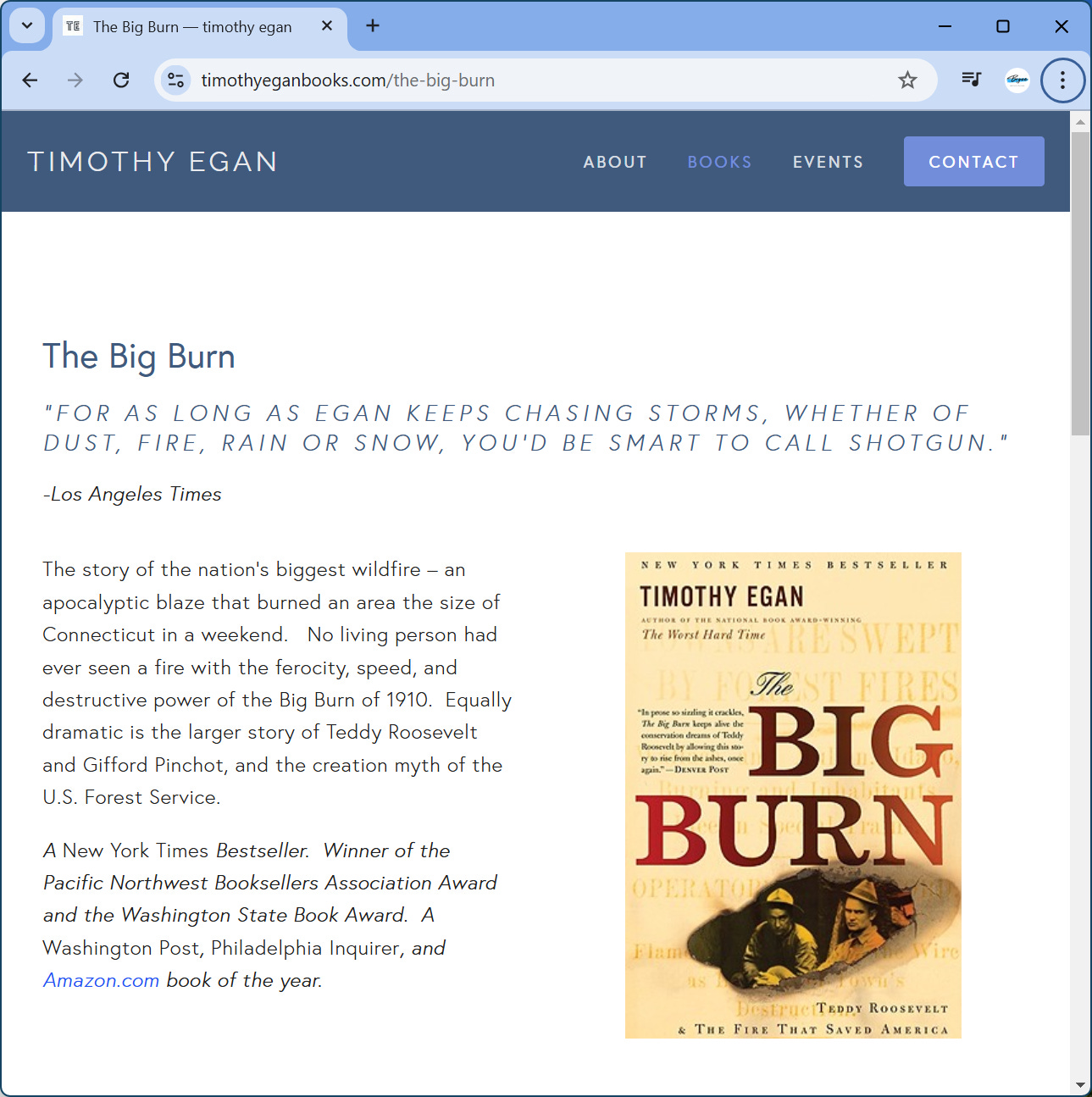 I can’t stop thinking about The Big Burn. I read it more than a decade ago and it is seared into my memory.