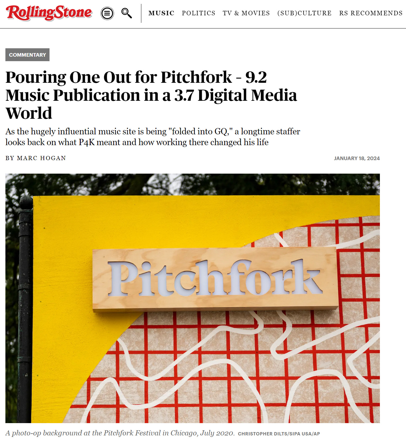 Marc Hogan, a senior staff writer who has written for Pitchfork since 2004, looks back in an article published in Rolling Stone.