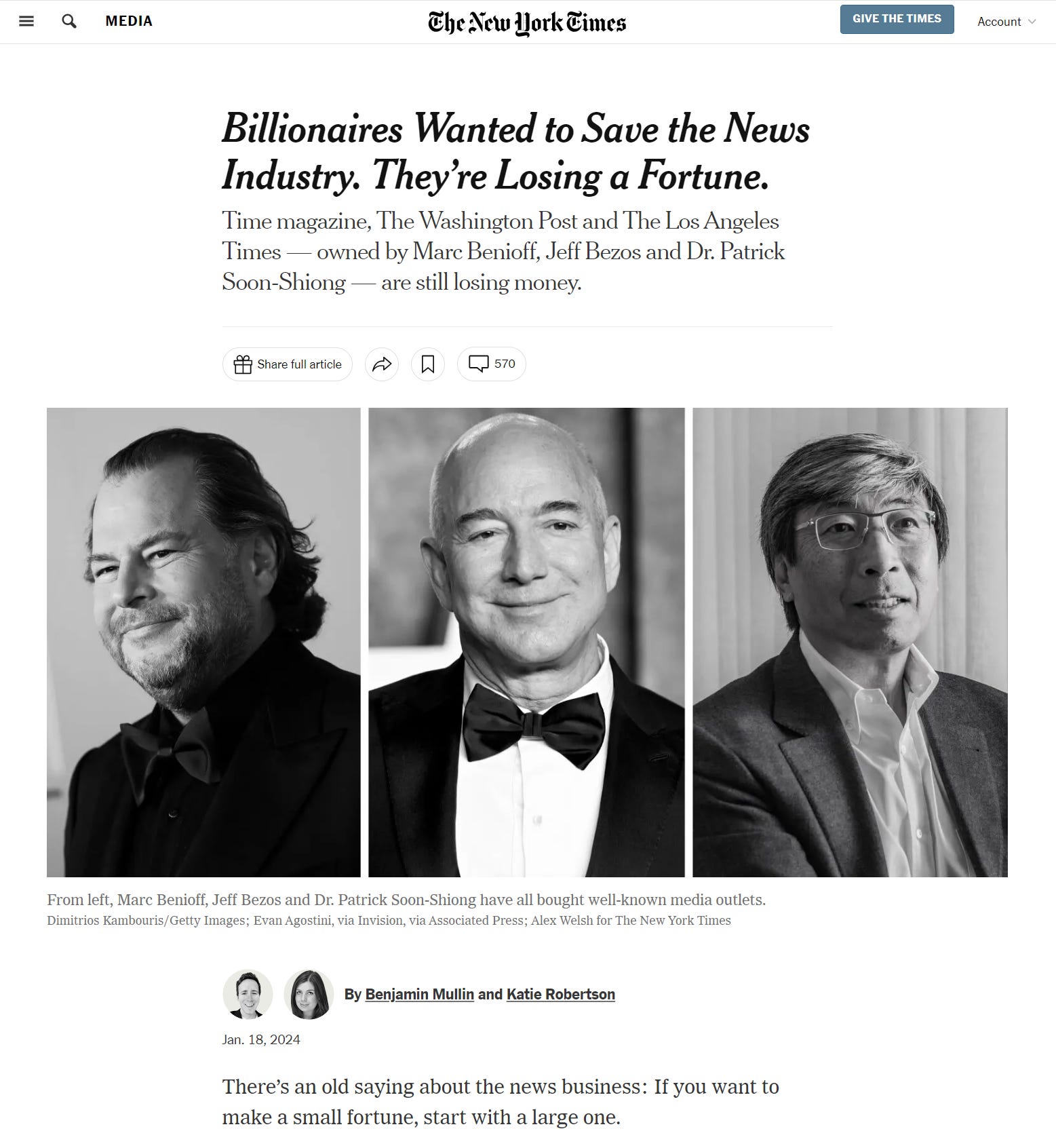 “Wealth doesn’t insulate an owner from the serious challenges plaguing many media companies, and it turns out being a billionaire isn’t a predictor for solving those problems,” said Ann Marie Lipinski, the curator of the Nieman Foundation for Journalism at Harvard. “We’ve seen a lot of naïve hope attached to these owners, often from employees.”