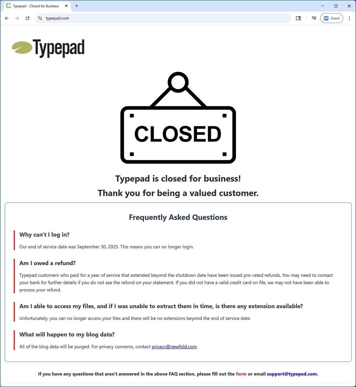 Each January, Iâve debated about whether or not to renew my Typepad subscription. Next year, I wonât have to.