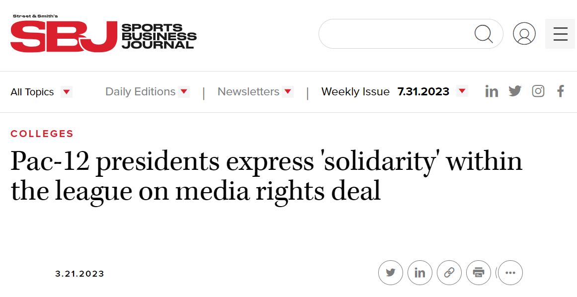 USC and UCLA put things in motion last year when they decided to defect to the Big Ten in 2024. I haven’t followed every nuance of the story line since then (and always knew it could potentially end badly), but had faith that it would all work out. Multiple articles noted that the remaining university presidents were in ‘solidarity.’ Here are two from this spring: